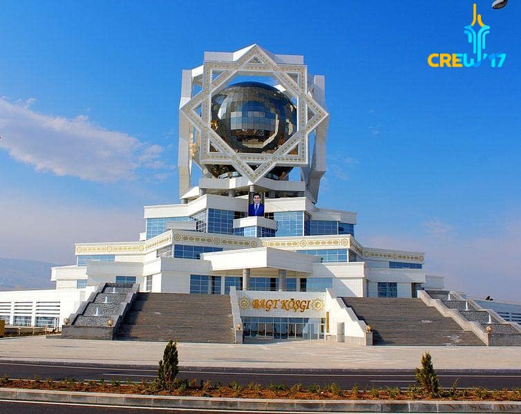 Построено оно турецкой строительной компанией «Полимекс» в Ашхабаде. Изюминкой считается куб, возвышающийся на больших колоннах. Он вбирает в себя шар диаметром 32 метра. Так архитекторы изобразили Землю, а на ней поместили карты Туркменистана. Значимо также то, что 4 входа в здание обозначают 4 стороны света.